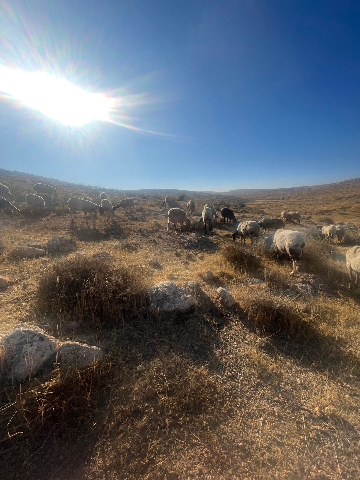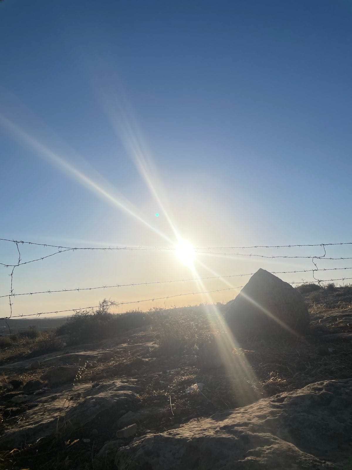 Left: An early morning out grazing with the shepherds in Susiya. Right: The late afternoon sun, peeking through barbed wire. Photos courtesy Sam Sherman.
