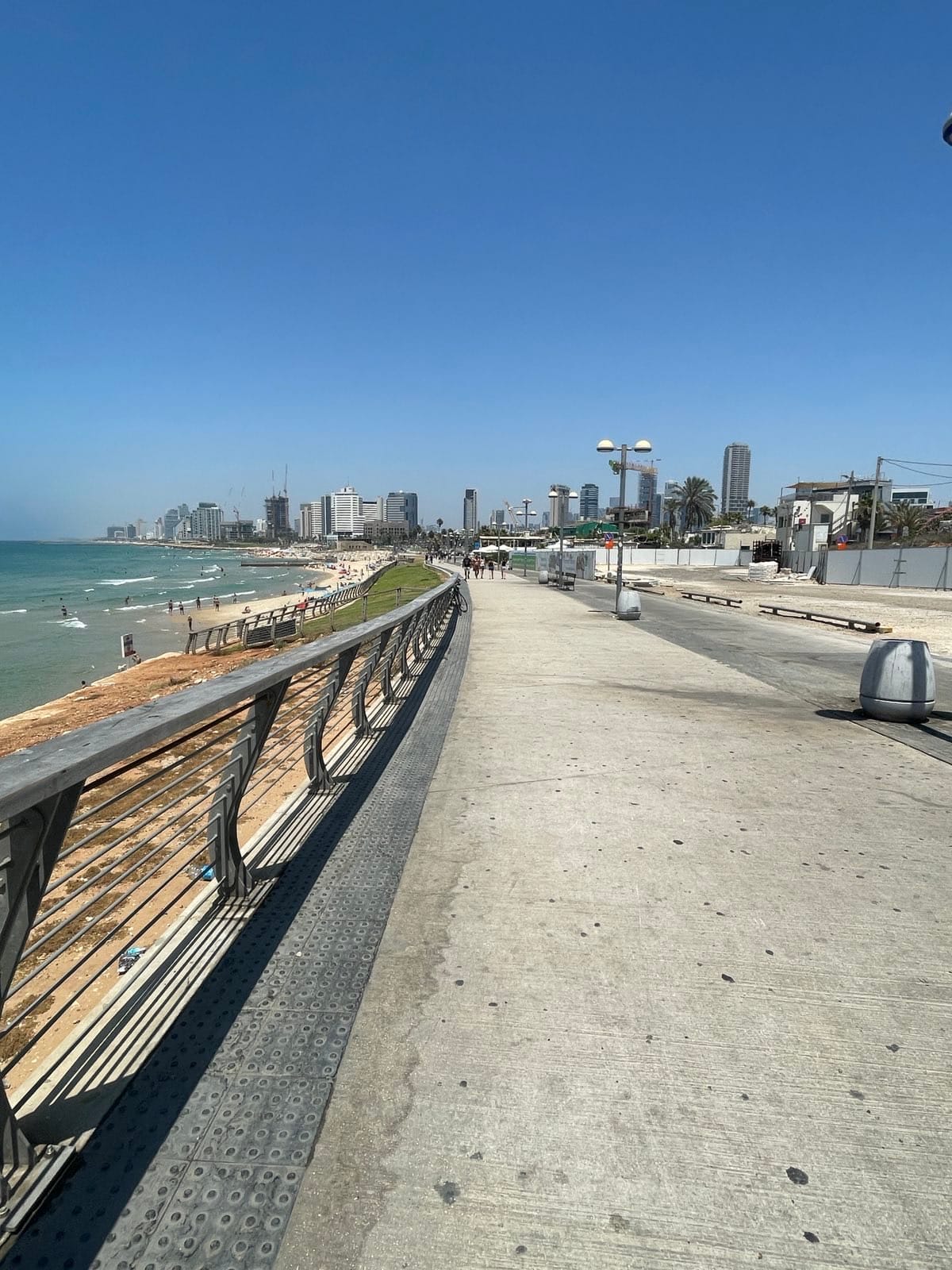 Left: The walkway to the beach in Tel Aviv / Occupied Yafa. RIght: A corridor in the Old City of Jerusalem / Al-Quds, with the Qubbat as-Sakra (Dome of the Rock) in the distance.