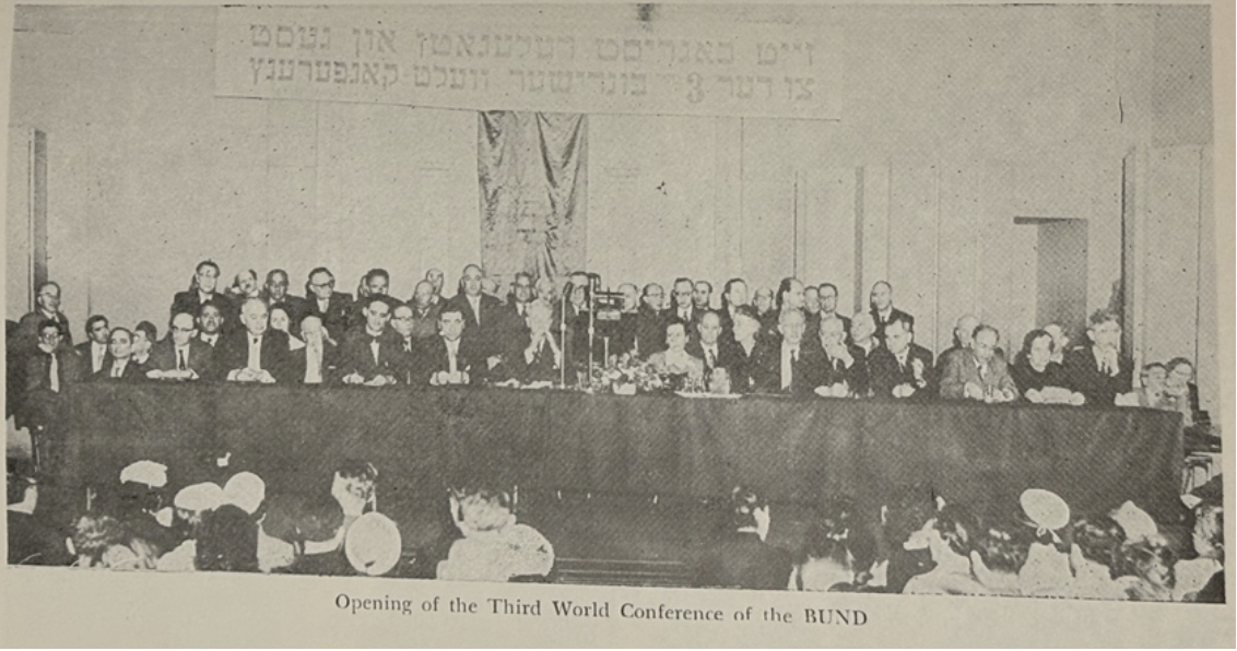 The Third World Conference of the BUND expresses satisfaction at the progress made by various BUND organizations toward becoming important and influential factors in Jewish communal life in their respective countries. In addition to building their own auxiliary organizations, the BUND movement in a number of countries has participated in establishing and expanding those general Jewish organizations that play a constructive role in Jewish communal life.